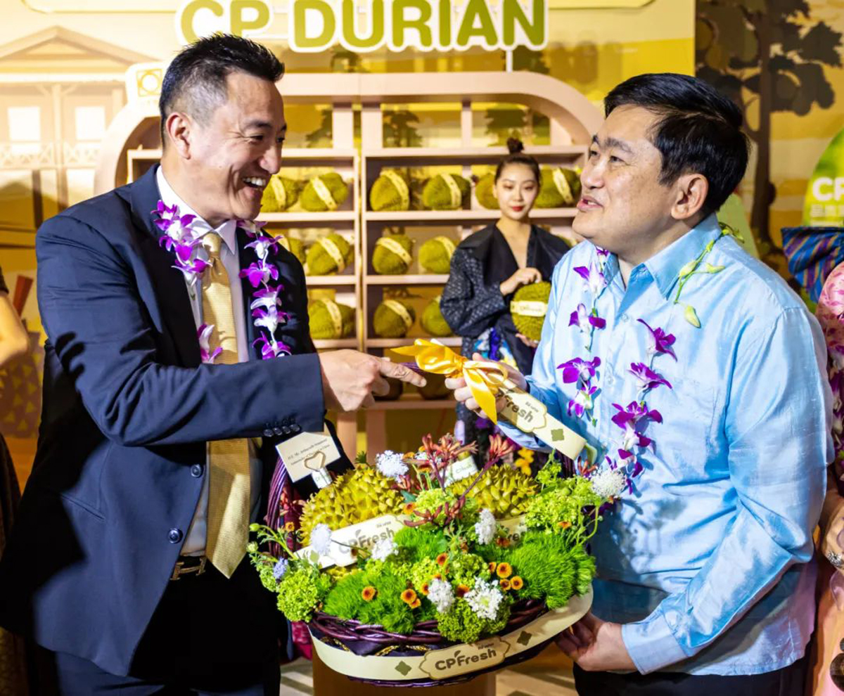 ▲楊小平CEO向阿塔育·習(xí)薩目閣下贈(zèng)送CP Fresh北京首發(fā)榴蓮